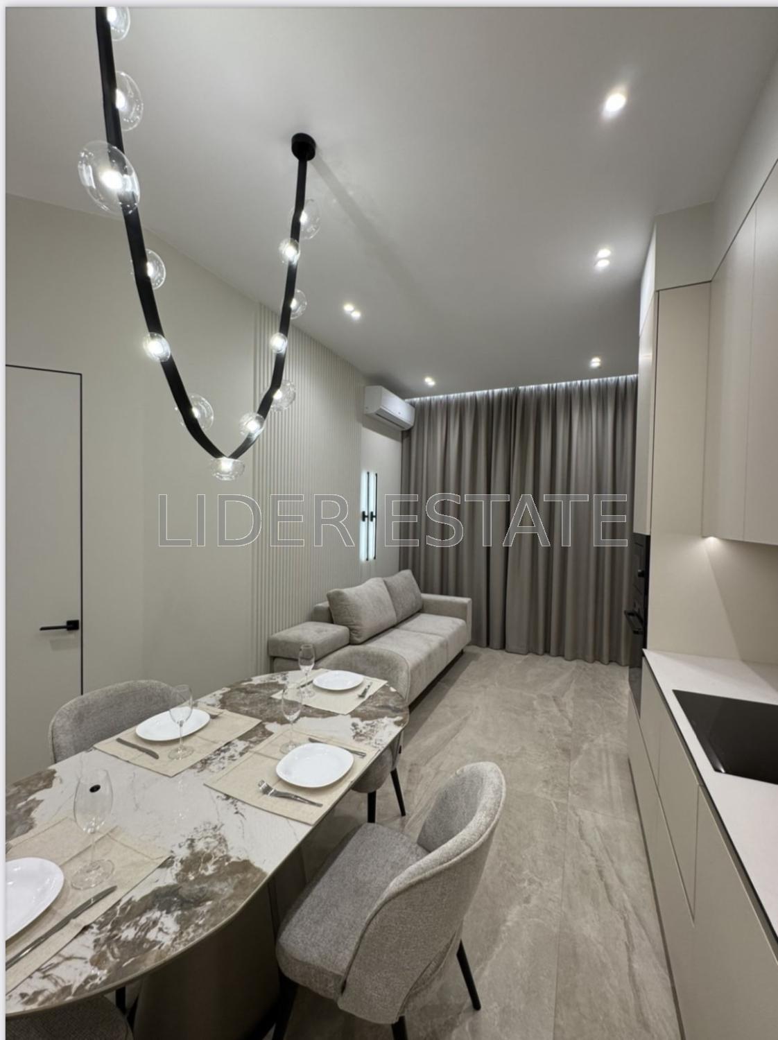 Квартира вмебльована і обладнана усією необхідною побутовою технікою (електроплита, мікрохвильова піч, холодильник, посудомийна машина, пральна машина та ін.) та кондиціонером. Панорамні вікна, Wi-Fi. Забезпечена безпека: відеодомофон, броньовані двері, пожежна сигналізація, протипожежна система, охоронна сигналізація, відеонагляд та охорона території.