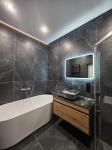 Квартира продається з усією побутовою технікою і меблями, є камін, Wi-Fi і кондиціонер, панорамні вікна і тераса. Для власників електромобілів доступна зарядка. Також є підземний і наземний паркінги та система безпеки: домофон, відеодомофон, кодовий замок, броньовані двері і охоронна сигналізація. З вікон квартири чудовий краєвид на місто, двір та вулицю.