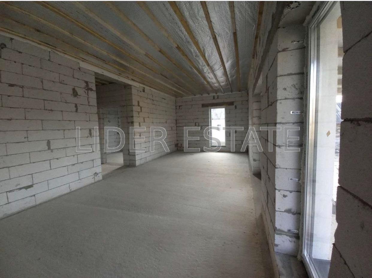 Стіни - газоблок 300мм, утепелний ззовні 10 см пінопласту та нанесена декоративна штукатурка. Стіни всередині штукатурки не потребують, готові під чистову обробку. Дах - металочерепиця, утепелнений мінеральною ватою. Тераса знаходиться під навісом. Вікна - двокамерні.