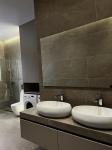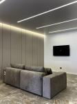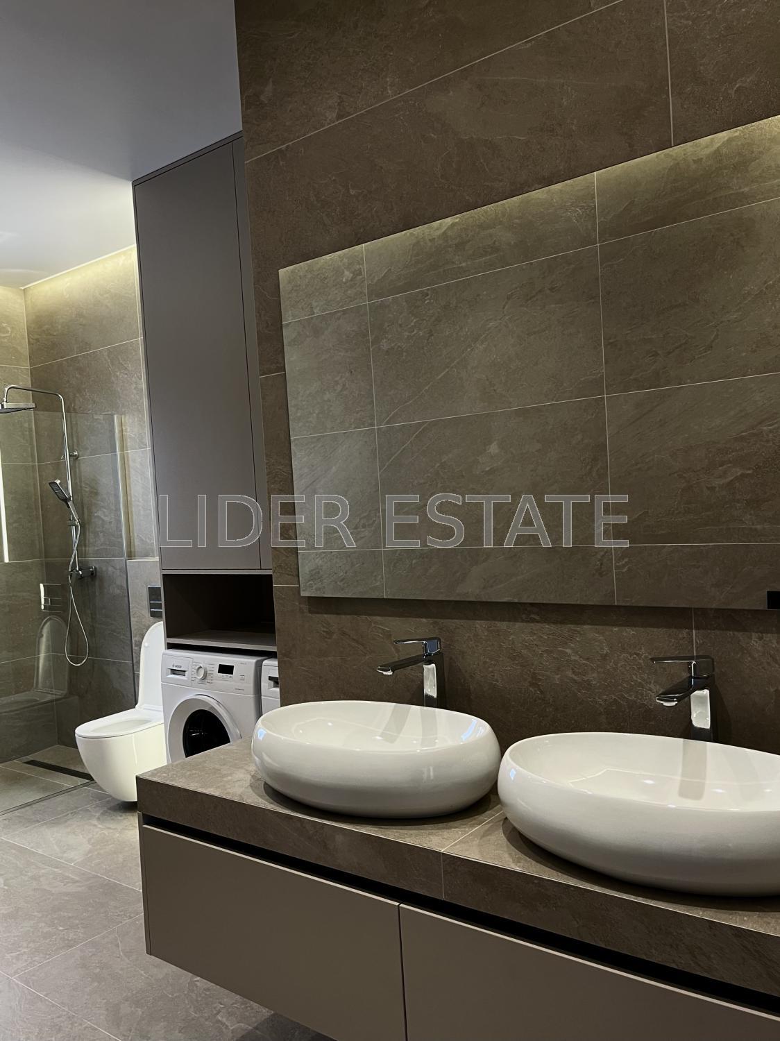 Кухня-студія з плазмовим телевізором, електричною плитою, мікрохвильовою піччю, електричною духовкою, холодильником, посудомийною машиною та іншою побутовою технікою. У санвузлі пральна та сушильна машини. Кондиціонер, панорамні вікна, меблі, Wi-Fi. Безпека та комфорт - відеодомофон, охорона території, паркан. Вид з вікон - на двір, вулицю та парк.